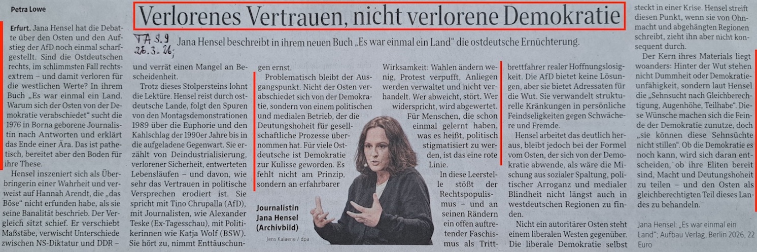 01.04.26 #VERTRAUEN in die #DEMOKRATIE (?) – eine berechtigte #HINTERFRAGUNG # 1. April 202626. März 2026PachT _ Autor / Blogger Nr. 287 “ Graue ZONEN gibt es nicht nur im HIRN.“[M. G.] IDEE @ AUSFÜHRUNG @ Text / Foto&Auswahl @ © PachT Auf X teilen (Wird in neuem Fenster geöffnet) X Auf Facebook teilen (Wird in neuem Fenster geöffnet) Facebook Gefällt mir Wird geladen … Ähnliche Beiträge