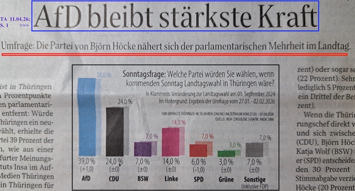 Rechts: Ministerpräsident Voigt (CDU) mit früherem MP Ramelow (DieLinke)Die REGIERUNGSARBEIT mit der hintergründig rot-schwarzen KOOPERATION hat bisher die politische WIRKUNG auf die WÄHLER eindeutig verfehlt.