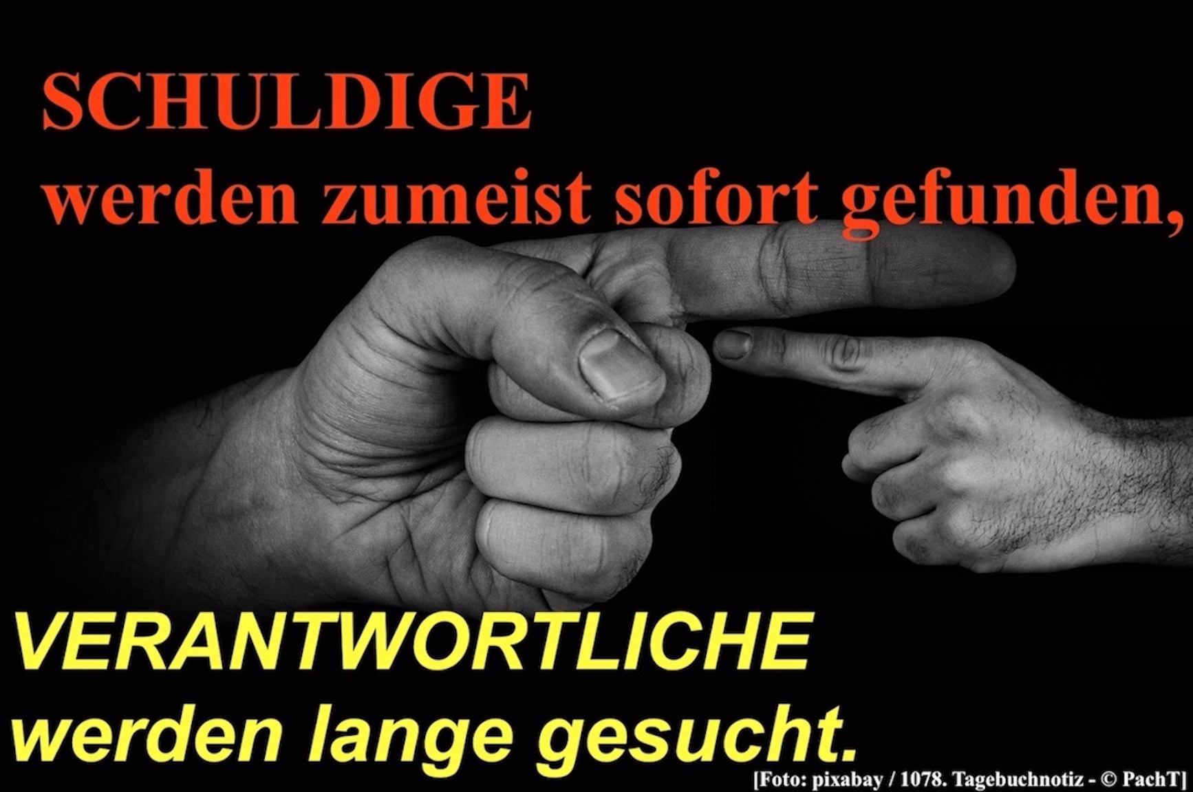 27.04.26 #SUCHEN und #FINDEN – längst nicht nur ein #KINDERSPIEL mehr # 27. April 202627. April 2026PachT _ Autor / Blogger SCHULDIGE werden zumeist sofort gefunden,VERANTWORTLICHE werden lange gesucht. __© PachT 2026SSW 1078Gedanke über die ungerechte Beurteilungvon Vorkommnissen *** “Wenn GRÜNDE fehlen, suchen wir BEWEISE.“[W. F.] IDEE @ AUSFÜHRUNG @ Text / Fotoauswahl @ © PachT Auf X teilen (Wird in neuem Fenster geöffnet) X Auf Facebook teilen (Wird in neuem Fenster geöffnet) Facebook Gefällt mir Wird geladen … Ähnliche Beiträge