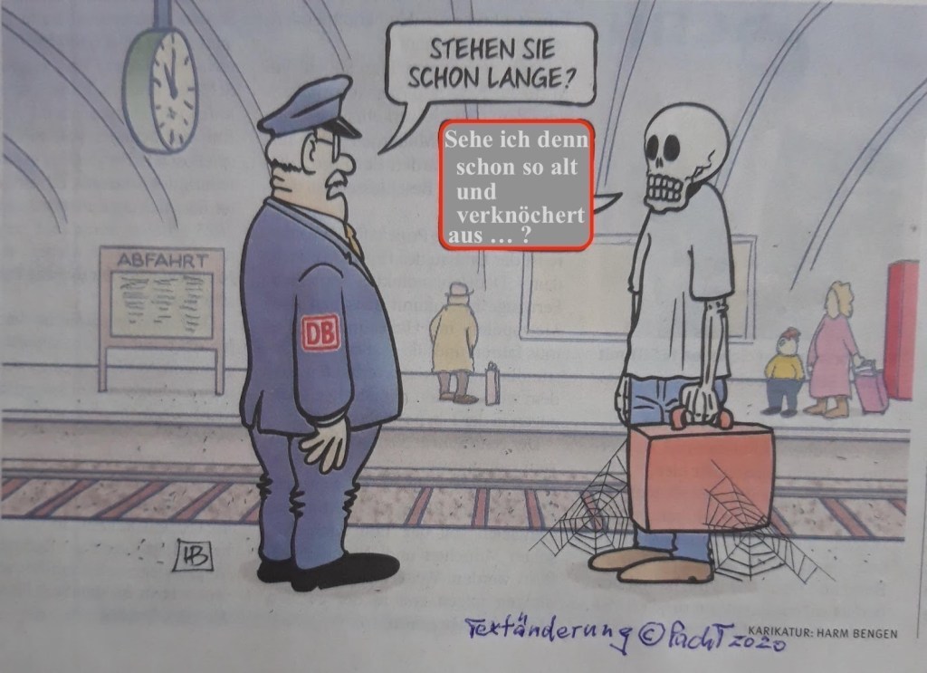 ALTWERDEN ist wie eine POLONAISE: Ist man j u n g, stellt man sich vorne vor und tanzt bis in die FRÜH um "Drei" in der NACHTBAR. Ist man aber dann a l t, stellt man sich hinten an und schleppt sich in der FRÜH um "Drei" auf die TOILETTE. ___ © PachT 2016 SSW 502 ___