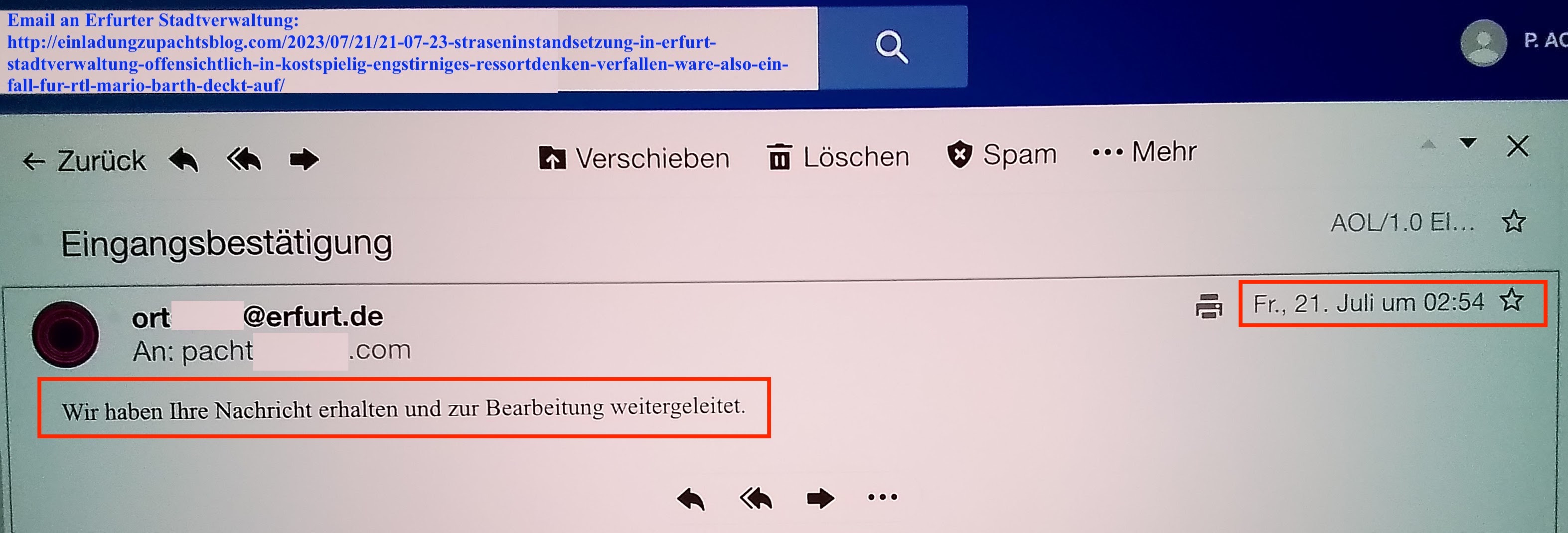 Nachstehend die sofortige REAKTION der Erfurter STADTVERWALTUNG auf meine gestrige MITTEILUNG über eine umfassende STRASSENSANIERUNG >>