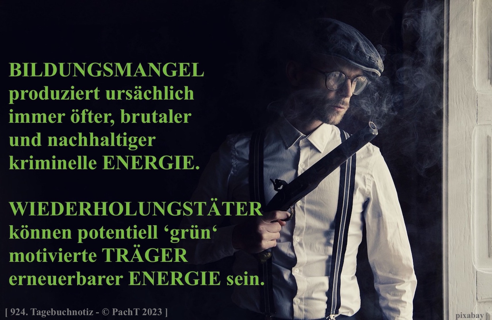Die politische LANDSCHAFT wird hierzulande nicht von innovativen IDEEN geprägt, sondern von einer ‘grünen‘ IDEOLOGIE überschattet. In meiner 924. Tagebuchnotiz habe ich bildhaft eine gefahrvolle QUELLE skizziert.