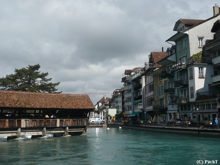 Bick auf eine überdachte BRÜCKE über die Aare … :