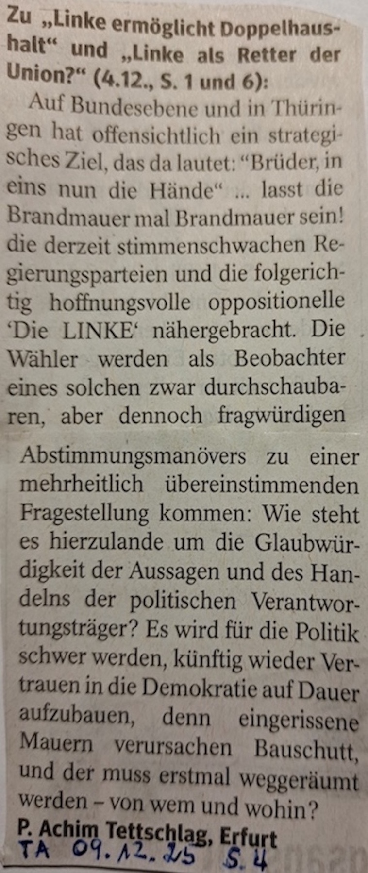 wenn eine politisch schwache GRUPPIERUNG in der gesellschaftlichen MITTE zu einem folgenschweren RUNDUMSCHLAG gegenüber eines augenscheinlich ÜBERLEGENEREN, – des OBSIEGENS zwar ungewiss -, auszuholen vermag.