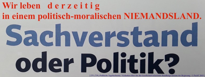 “Politische WELTVERBESSERER gibt es fürwahr genug,aberüber nichts sagende SONNTAGSREDEN mit ungeschickten verbalen SPAGATEN hinaus reicht ihr wirkliches HANDLUNGSVERMÖGEN bei weitem nicht.“ [PachT 20.04.2020]