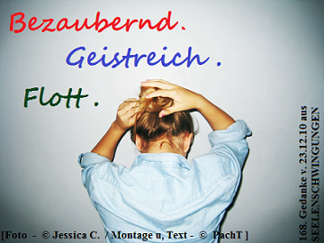 wir hatten worte gesammelt um das enttäuschen zu verstecken sagst du nun sitzen wir im schatten der buchstaben um das wort HILFLOS zu ersetzen hörst DU, fragst du im klang der winde wie sie fielen die buchstaben mit der entäuschung, über all das unbegreifliche. ___ © Chr.v.M. ___