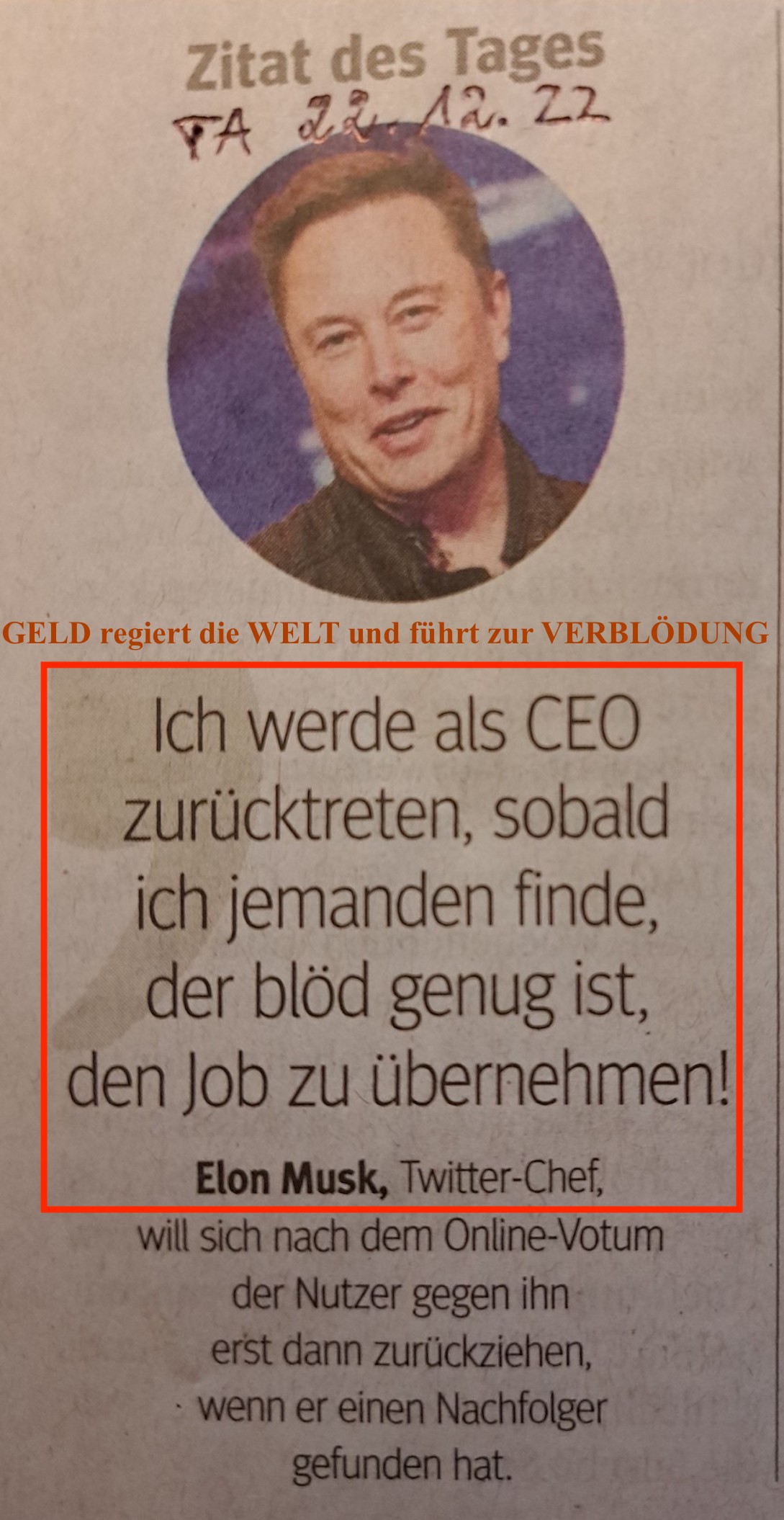 GELD regiert immer die WELT - egal, ob du selbst welches hast oder nicht! ___ © PachT 2015 SSW 474 ___