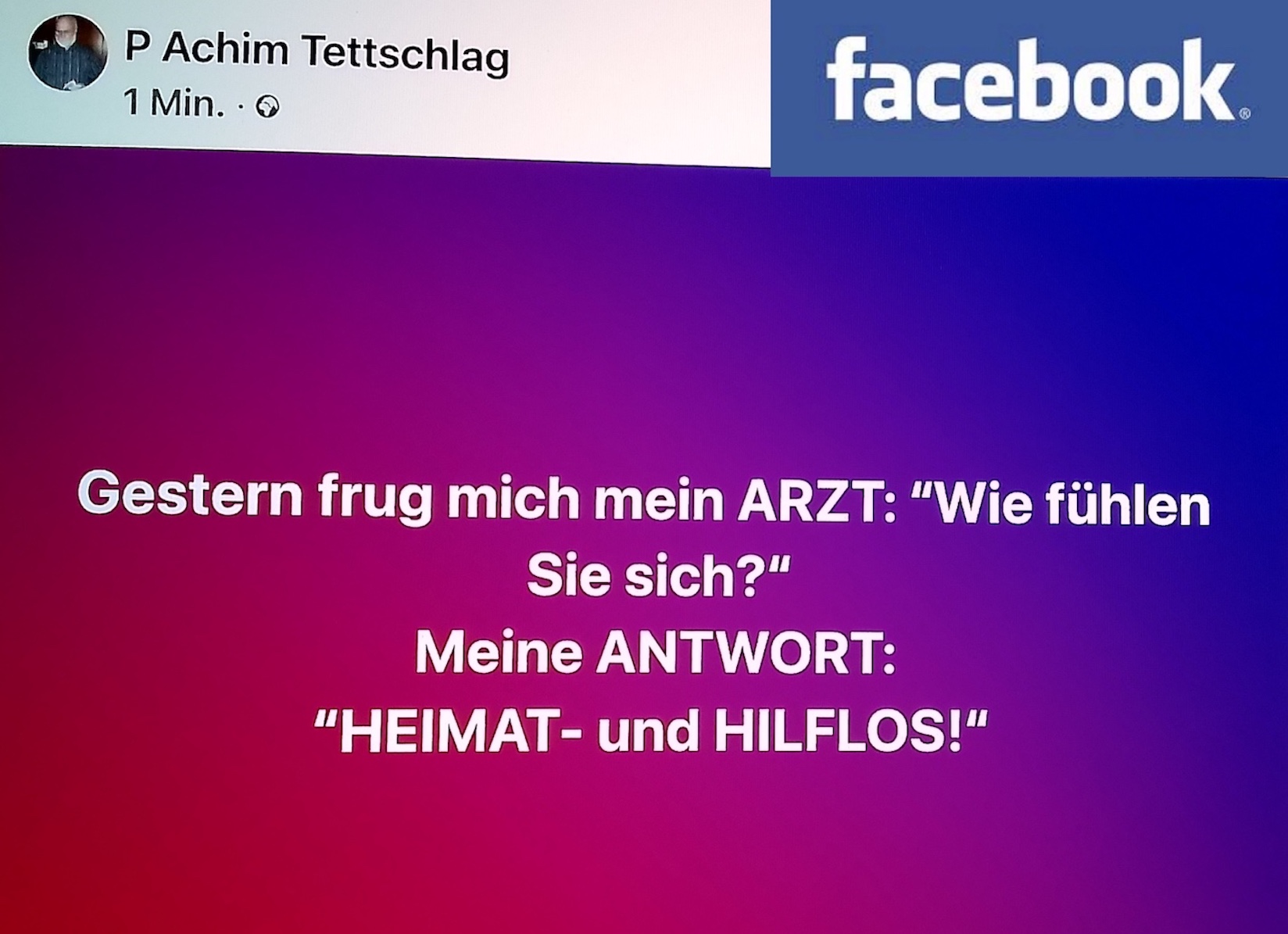 10.10.24 #Gepräch beim #ARZT übers #WOHLBEFINDEN # 10. Oktober 2024PachT _ Autor / Blogger 3 Kommentare IDEE @ AUSFÜHRUNG @ Text / Fotos @ © PachT Klicke, um auf X zu teilen (Wird in neuem Fenster geöffnet) X Klick, um auf Facebook zu teilen (Wird in neuem Fenster geöffnet) Facebook Gefällt mir Wird geladen …
