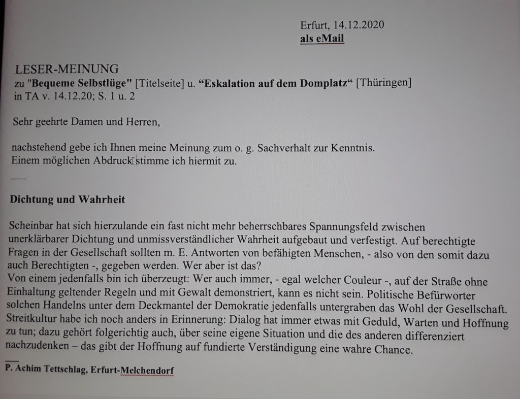 Weder SELBSTÜBERSCHÄTZUNG noch unüberlegte UNTERWÜRFIGKEIT sowie weder ÜBERTREIBUNGEN noch UNTERTREIBUNGEN sind der menschlichen GEMEINSCHAFT miteinander und im MITEINANDER mit der NATUR nicht dienlich.GOTT und die GEBOTE können wie ein KOMPASS hilfreich sein, unsere LEBENSQUALITÄT zu sichern, so man gewillt ist, im angebotenen GLAUBEN zu leben.Bleibt in diesem SINNE zu hoffen, dass die steigende Zahl der KIRCHENAUSTRITTE nicht mit einer sinkenden Zahl GLÄUBIGER einhergeht. Mein damaliger KIRCHENAUSTRITT jedenfalls hat mich zu neuem DENKEN geführt, dem ich dankbar nachkomme.