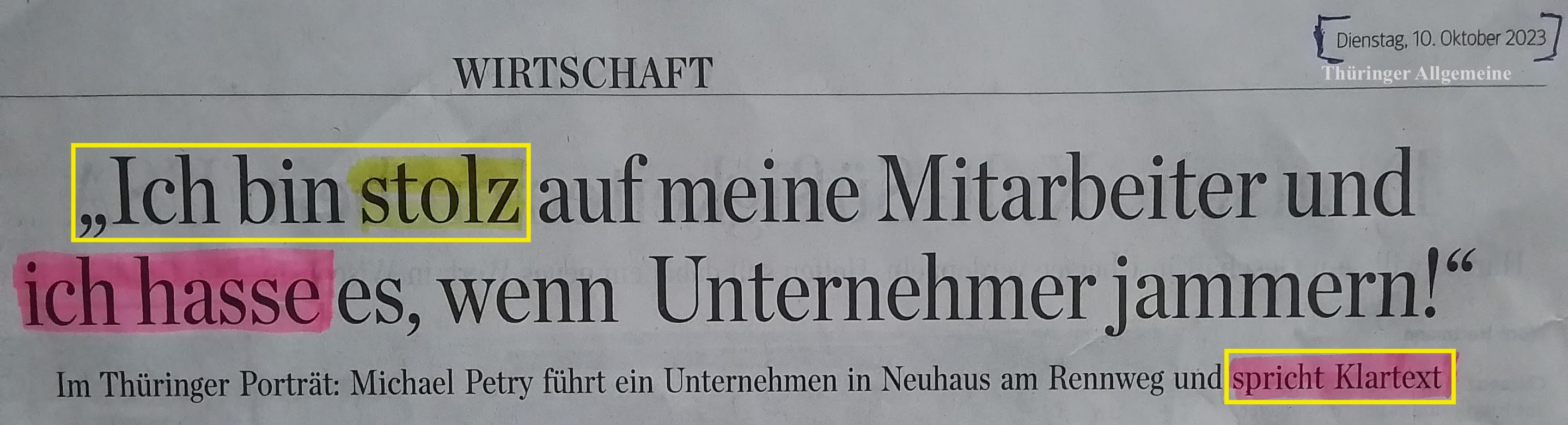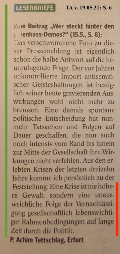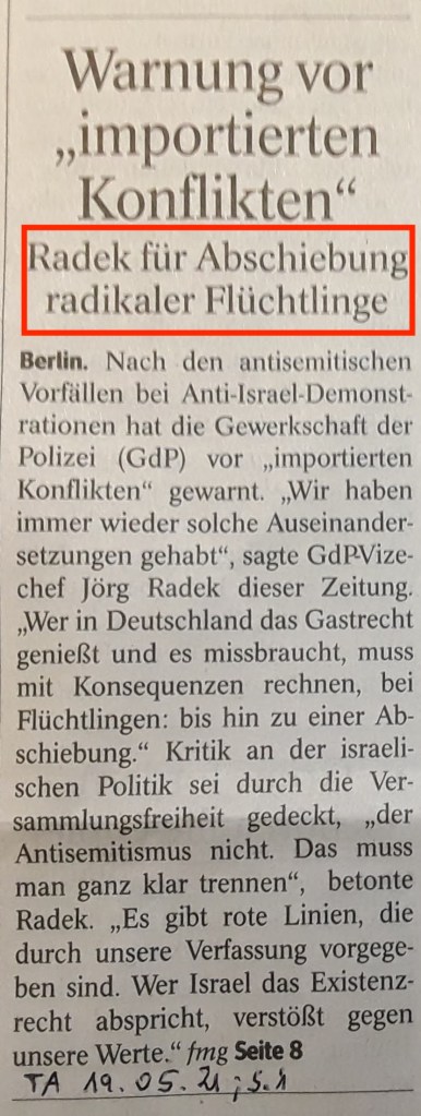 “Eine andere Meinung zu haben, ist noch lange kein Hass. Eine andere Meinung abzuwürgen, das grenzt an Hass.“ [St. Fleischer]
