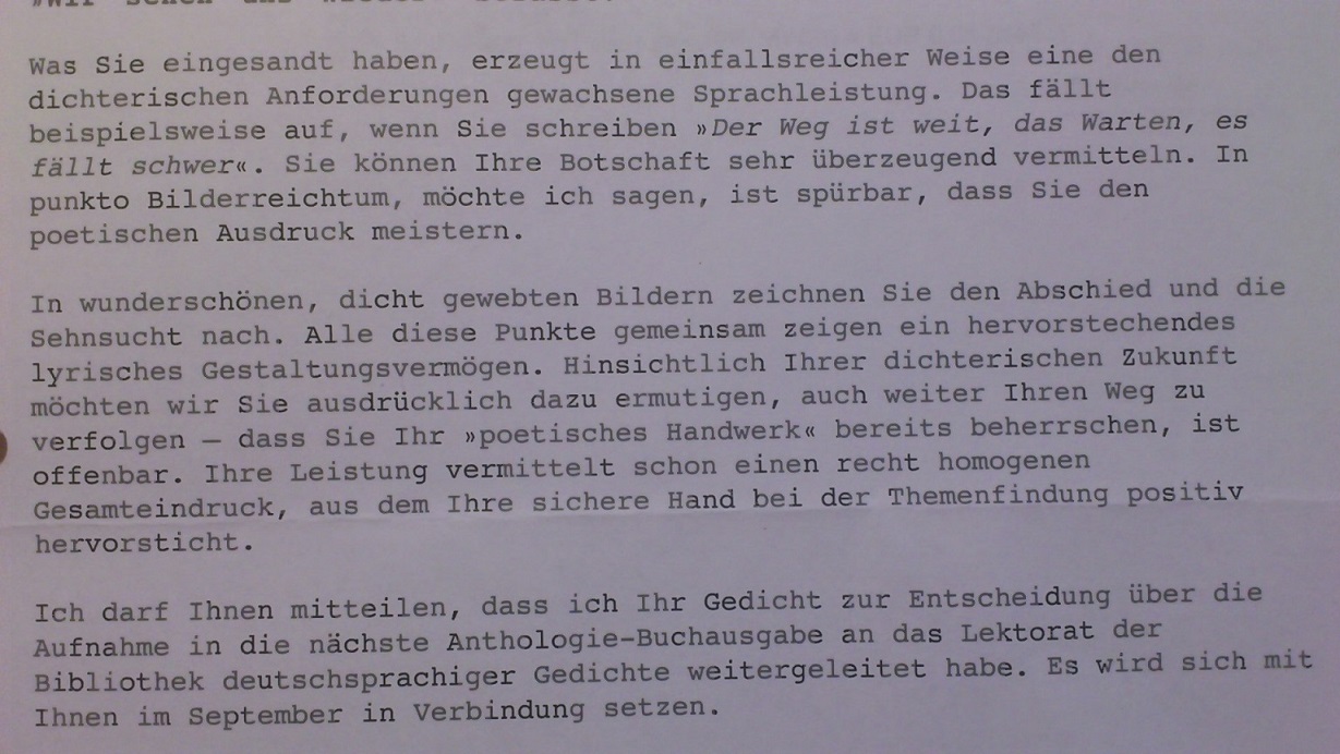 Nichts ist schlimmer, als nun auf das entscheidende URTEIL des zuständigen LEKTORATS zu warten … zu warten … zu warten!