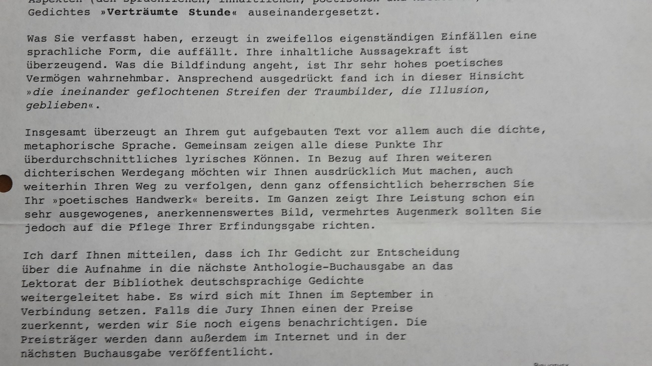 entschieden hatte, an einem LITERATURWETTBEWERB teilzunehmen. Das Besondere diesmal ist, dass 2017 die