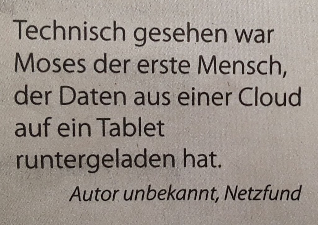 “So mancher wackelnde TISCH wird durch eine BIBEL gestützt.“ [K. I.]