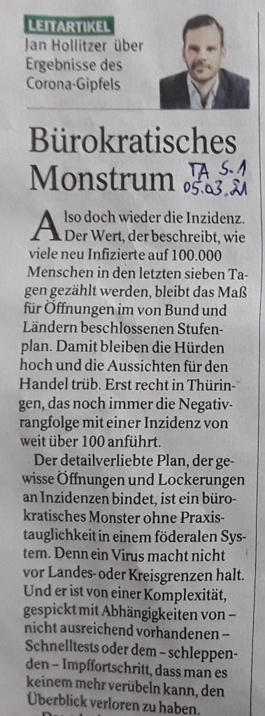 05.03.21 #EILMELDUNG für #Parteien / #Politiker / #Bundestag / #Bundesrat und #Lobbyisten # 5. März 20215. März 2021PachT _ Autor / Blogger Kommentar hinterlassen Darauf musste ich einfach reagieren und die Inspiration ließ nicht lannge auf sich warten: Eine literarische Empfehlung für den Redakteur, Herrn Mirko Krüger: + + + + _ _ _ + + + + Könnte der “RENNER“ zur ÖFFNUNG des EINZELHANDELS werden : ********************IDEE @ AUSFÜHRUNG @ Text / Fotoauswahl & Montage@© PachT******************** Klicke, um auf X zu teilen (Wird in neuem Fenster geöffnet) X Klick, um auf Facebook zu teilen (Wird in neuem Fenster geöffnet) Facebook Gefällt mir Wird geladen …
