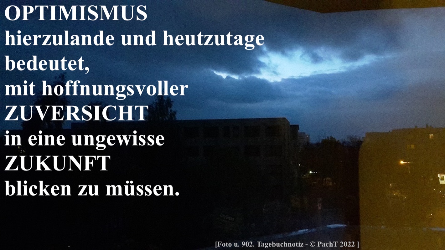 OPTIMISMUS hierzulande und heutzutage bedeutet, mit hoffnungsvoller ZUVERSICHT in eine ungewisse ZUKUNFT blicken zu müssen. __ © PachT 2022 SSW 902