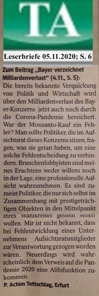 Die andauernde COVID-19-Pandemie kann keine Begründung für dieses Hinauszögern sein. Hier wird doch unstreitig eine private Bereicherung auf Kosten der Verbraucher geduldet, wobei der Verdacht, dass die Verquickung von Politik und Wirtschaft neue Blüten treibt, nur schwerlich entkräftet werden kann. Die Verbraucherministerin Frau Lemke (B‘90/Grüne) wird es hoffentlich im Zusammenwirken mit dem Justizministerium als eine ihrer Aufgaben ansehen, diesen Missstand zu beenden. Übrigens bleibt anzumerken: Weniger Verpackungsmaterial ist auch ein Beitrag für eine bessere Umwelt!