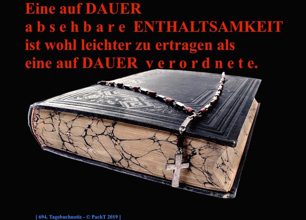 Eine auf DAUER a b s e h b a r e ENTHALTSAMKEIT ist wohl leichter zu ertragen als eine auf DAUER v e r o r d n e t e. ___ © PachT 2019 SSW 694 ___