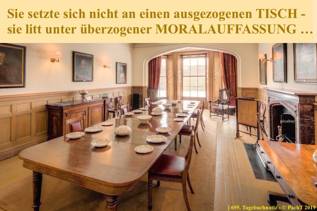 Sie setzte sich nicht an einen ausgezogenen TISCH - sie litt unter überzogener MORALAUFFASSUNG ... ___ © PachT 2019 SSW 695 ___