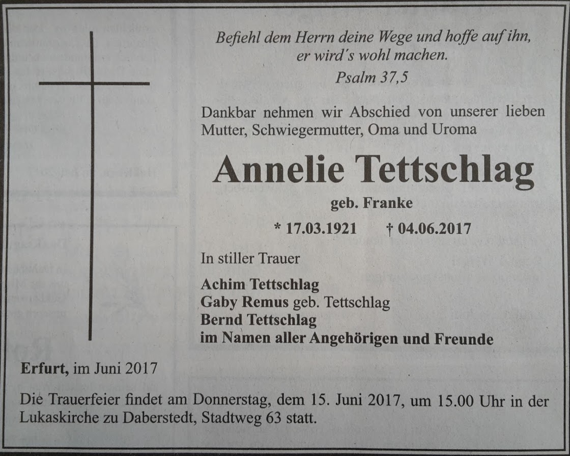 Nach 8 Jahren folgte unsere Mutter dem Vater, mit dem sie