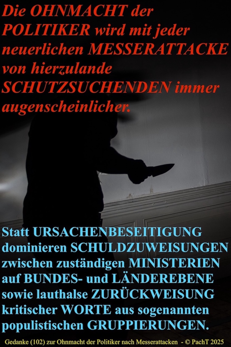 Statt URSACHENBESEITIGUNG dominieren SCHULDZUWEISUNGEN zwischen zuständigen MINISTERIEN auf BUNDES- und LÄNDEREBENE sowie lauthalse ZURÜCKWEISUNG kritischer WORTE aus sogenannten populistischen GRUPPIERUNGEN.