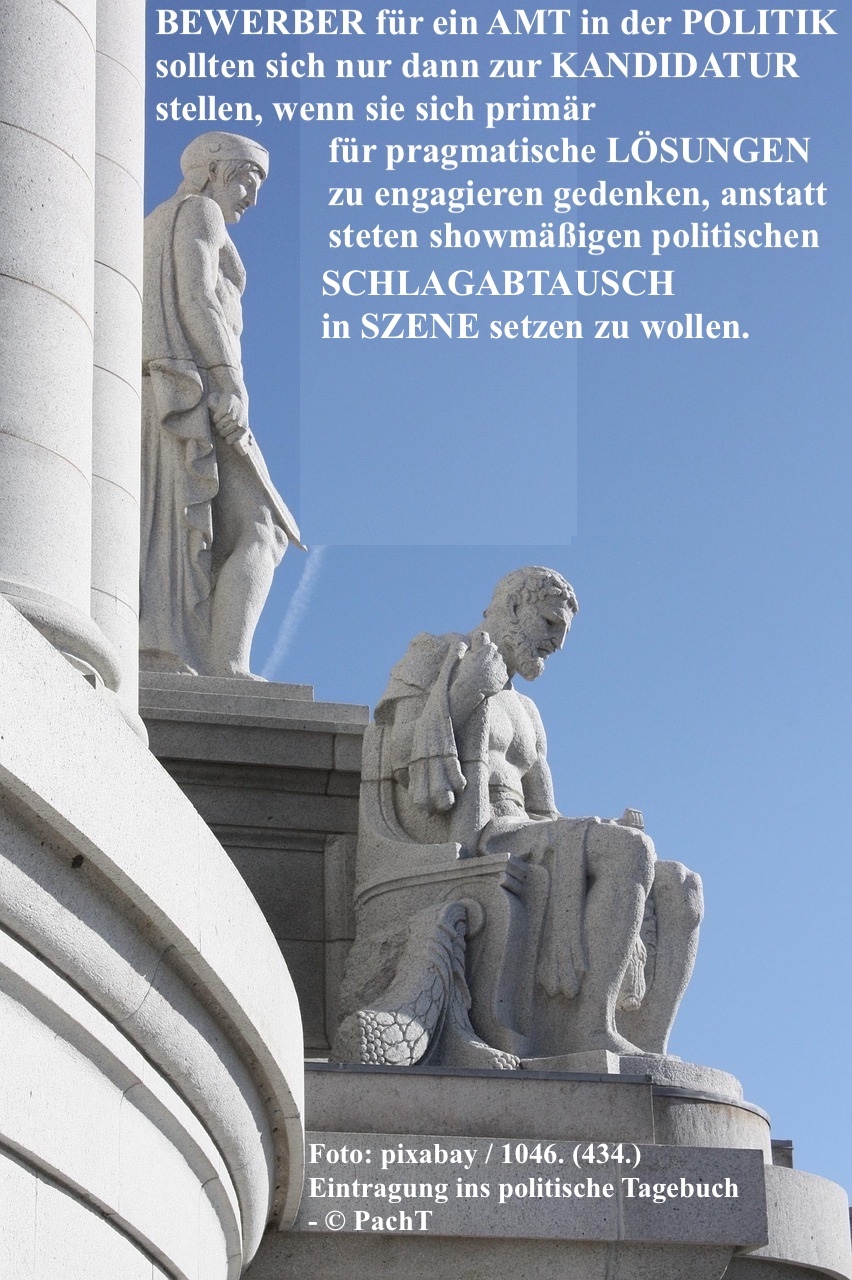 Immer öfter stelle ich mir die FRAGE, warum sich so mancher für ein politisches AMT bewirbt. In meiner 1046. (434.) Tagebuchnotiz habe ich meine GEDANKEN dazu auf den PUNKT gebracht: