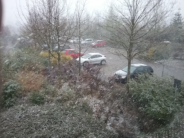 Ich schaue aus dem Fenster, blicke in Schnee;