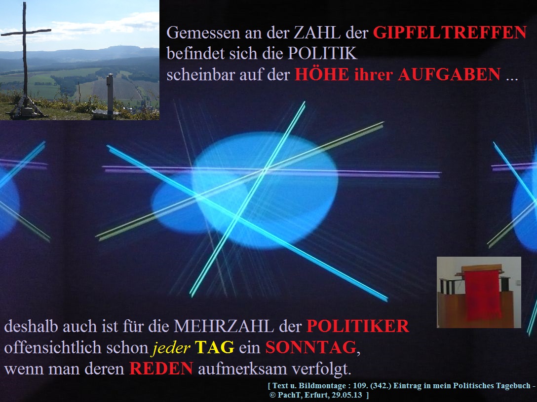 befindet sich die POLITIK scheinbar auf der HÖHE ihrer AUFGABEN; deshalb auch ist für die MEHRZAHL der POLITIKER offensichtlich