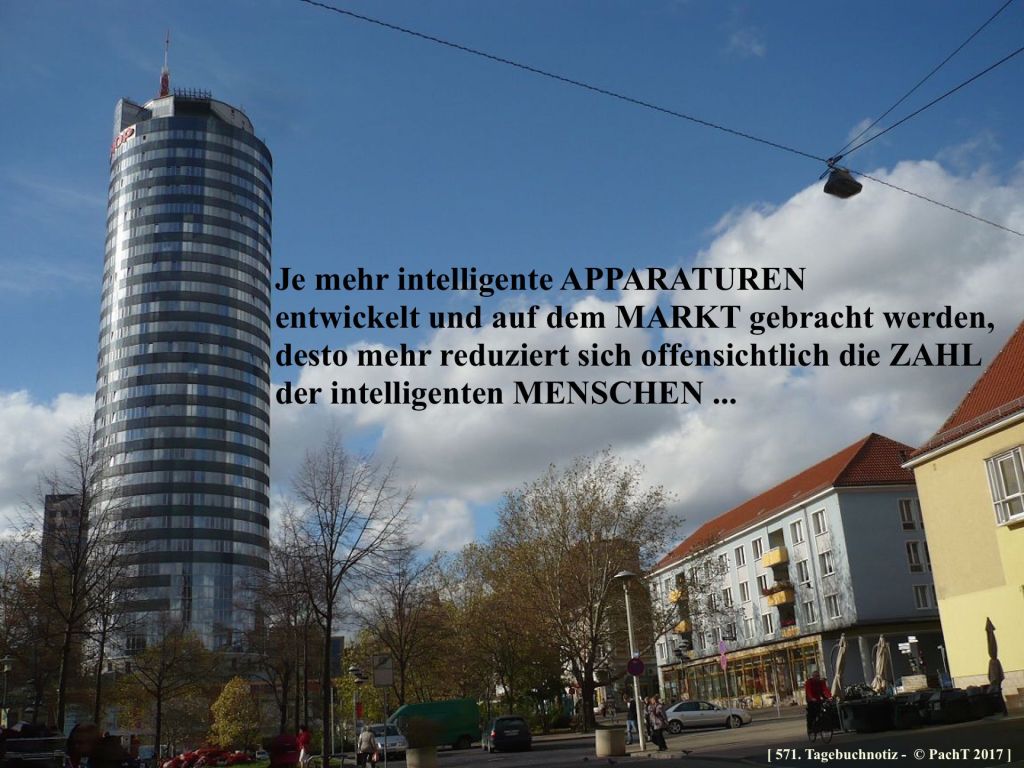 Je mehr intelligente APPARATUREN entwickelt und auf dem MARKT gebracht werden, desto mehr reduziert sich offensichtlich die ZAHL der intelligenten MENSCHEN ... ___ © PachT 2017 SSW571 ___