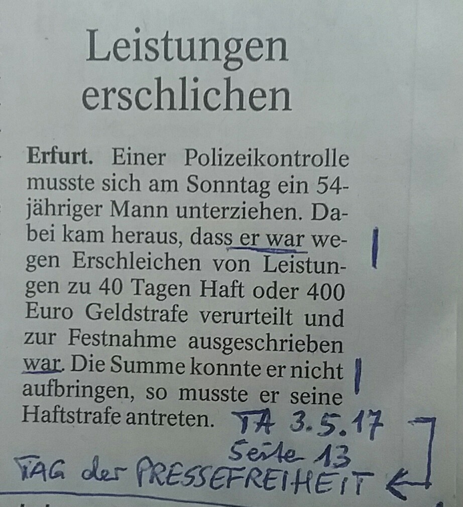 es tut mir leid, dass Sie Tag für Tag auf Fehlersuche fündig werden. Und dies sogar am Tag der Pressefreiheit. Wir arbeiten hart daran, derartige Pannen abzustellen, doch nicht immer gelingt es uns…