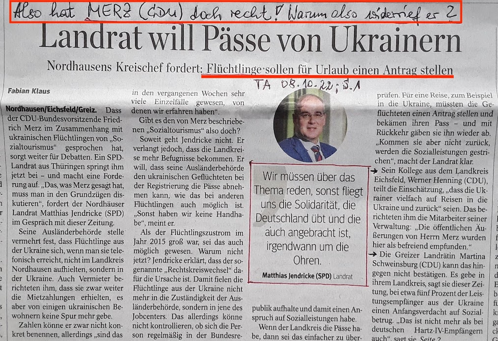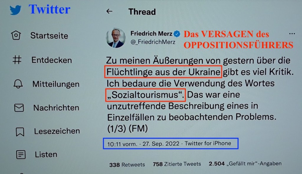 Mit dieser nachstehenden PRESSEMELDUNG ist wohl nun doch erwiesen, dass die FESTSTELLUNG des “SOZIALTOURISMUS“ nicht aus der Luft gegriffen ist. Was aber ist das für ein OPPOSITIONSFÜHRER, der sich selbst widerruft, nur um nicht von den IDEOLOGEN der AMPELKOALITION in die ECKE sogenannter ‘POPULISTEN‘ gestellt zu werden.