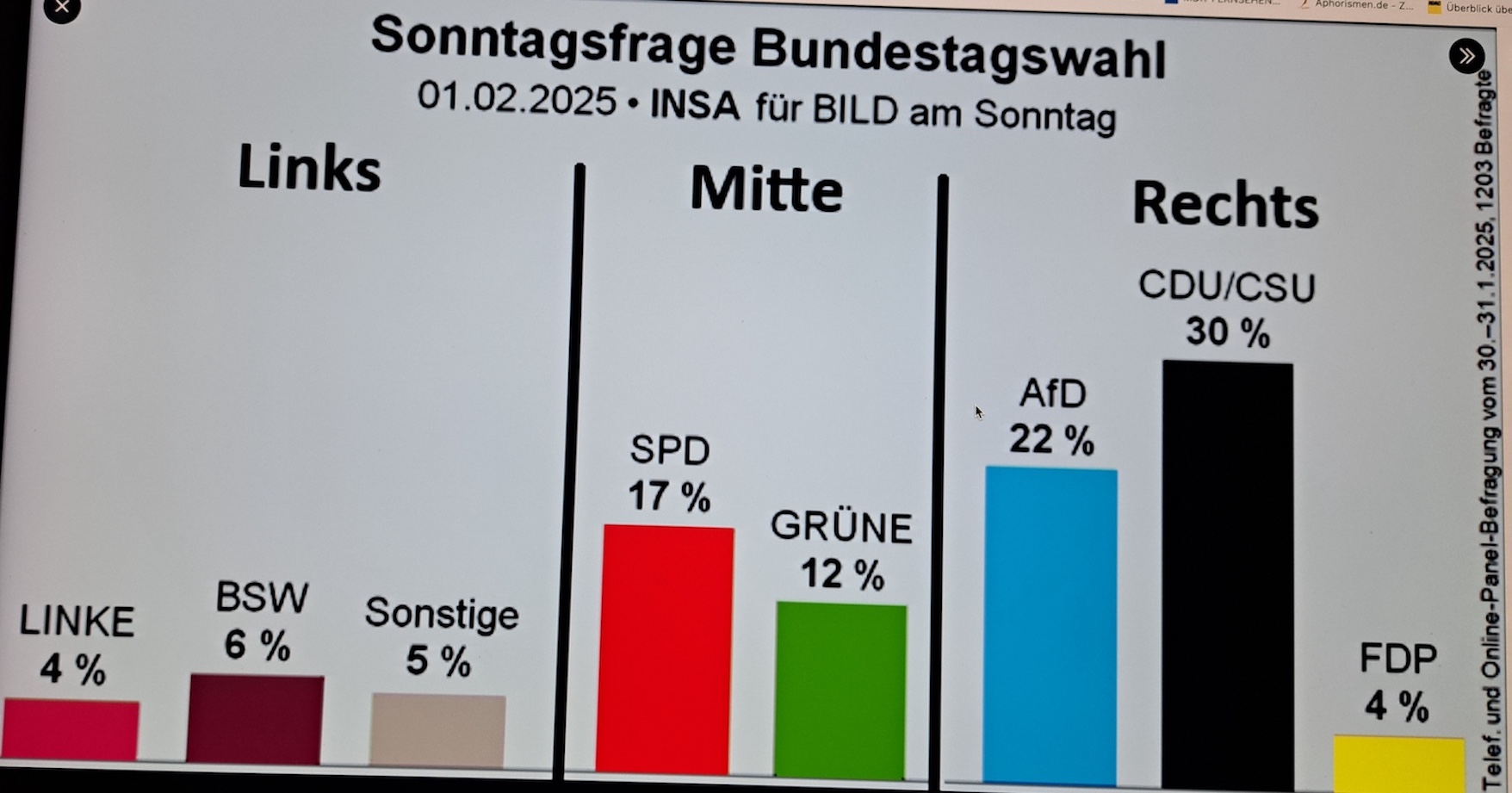 C D U und S P D haben den Status einer VOLKSPARTEI 'vergeigt'. Beide p o l i t i s c h e n LAGER werden derzeit noch von geblendeten LOBBYISTEN und desorientierten CLAQUEUREN gestützt, gefördert und gefeiert. Doch bereits sichtbar werdender ROST an den EMBLEMEN lässt ernsthafte PROBLEME erahnen ... ___ © PachT 2013 SSW 352 / 114 Gedanken zu den derzeitigen Umfrageergebnissen zur Bundestagswahl und der herrschenden Stimmung ___