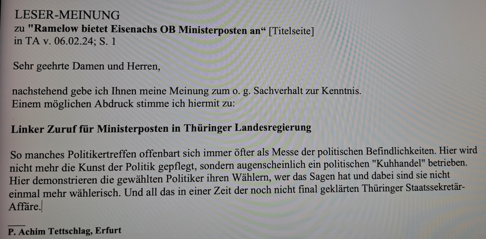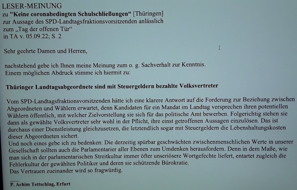 Thüringer Landtagsabgeordnete sind mit Steuergeldern bezahlte Volksvertreter