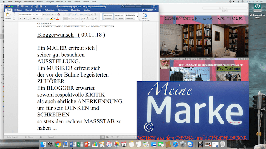 Ein MALER erfreut sich seiner gut besuchten AUSSTELLUNG. Ein MUSIKER erfreut sich der vor der Bühne begeisterten ZUHÖRER. Ein BLOGGER erwartet sowohl respektvolle KRITIK als auch ehrliche ANERKENNUNG, um für sein DENKEN und SCHREIBEN so stets den rechten MASSSTAB zu haben ... ___ © PachT 2018 SSW 604 ___